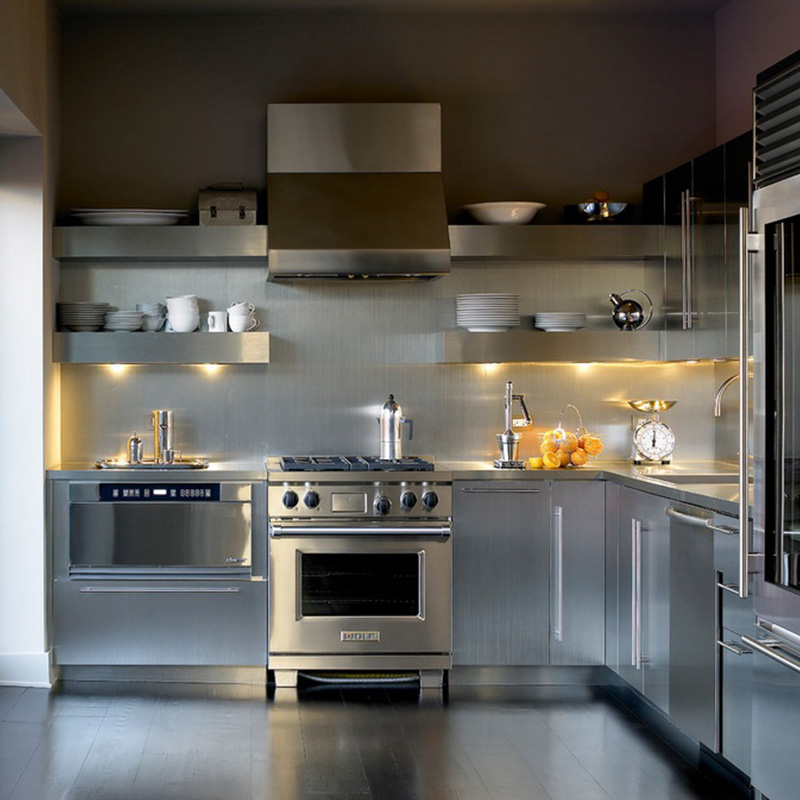 Modern paslanmaz çelik mutfak dolapları